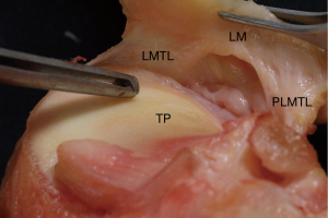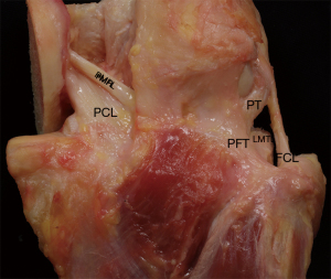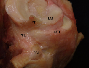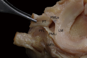 - Masferrer-Pino A, Saenz-Navarro I, Rojas G, et al. The menisco-tibio-popliteus-fibular complex: Anatomical description of the structures that could avoid lateral meniscal extrusion. Arthroscopy 2020;36:1917-25. [Crossref] [PubMed]